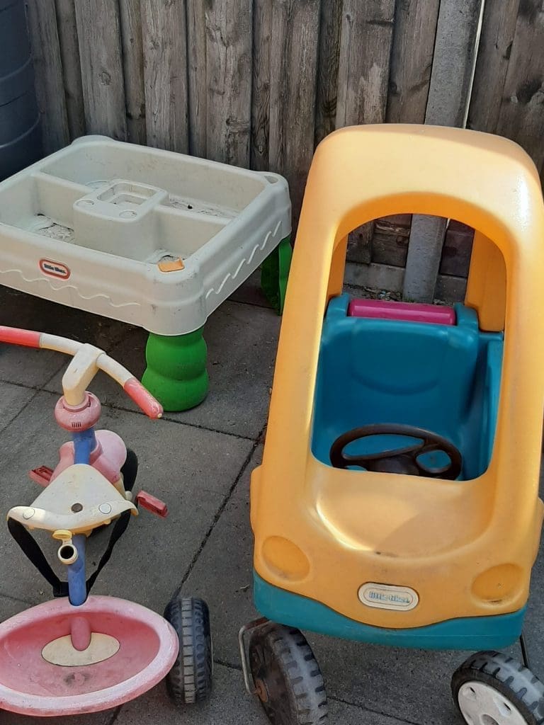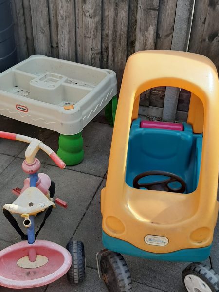 Onze tuin is afgesloten en voorzien van allerlei speelgoed.