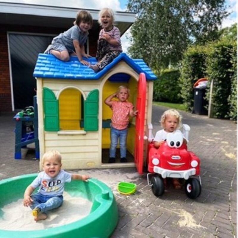 In onze ruime tuin staan diverse speeltoestellen, zodat de kinderen heerlijk buiten kunnen spelen. Samen genieten we van:
