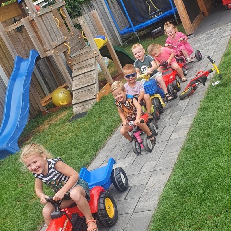 Hallo ouders! Mijn naam is Maureen (1993) en ik woon samen met mijn vriend Sander (1988), onze dochter Jula (2017) en onze zoon Nils (2019) in Eibergen. Mijn opvang in Eibergen is ook voor de omliggende plaatsen als Neede, Haarlo, Rietmolen of Haaksbergen snel bereikbaar. In 2012 heb ik mijn diploma Pedagogisch Medewerker behaald. Ik heb toen een half jaar als invalskracht op een kinderdagverblijf gewerkt. Na mijn opleiding ben ik eerst aan de slag gegaan als gastouder bij ouders aan huis. Vanaf 2015 heb ik de opvang vanuit mijn eigen woning gedaan. In 2018 hebben wij onze schuur geheel verbouwd tot een zelfstandige opvangruimte die van alle gemakken is voorzien!