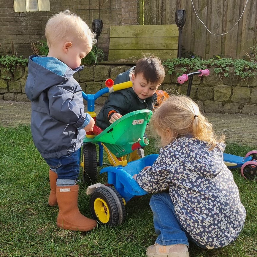 Ook thuis is er van alles te beleven: van liedjes zingen en boekjes lezen tot vrij spelen in de tuin, springen op de trampoline, met water kliederen in de zomer of de kipjes voeren. Er is genoeg speelmateriaal voor elke leeftijd, waarmee kinderen op een speelse manier worden uitgedaagd.